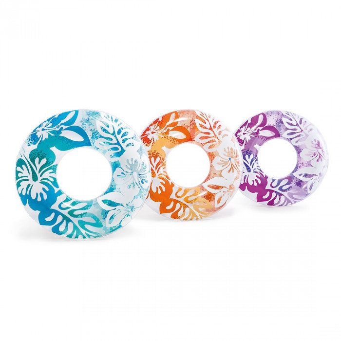 Круг для плавания Clear Color 91см, INTEX, 59251NP, Винил, 9+, Фиолетовый/голубой/оранжевый принт в ассортименте, Пакет