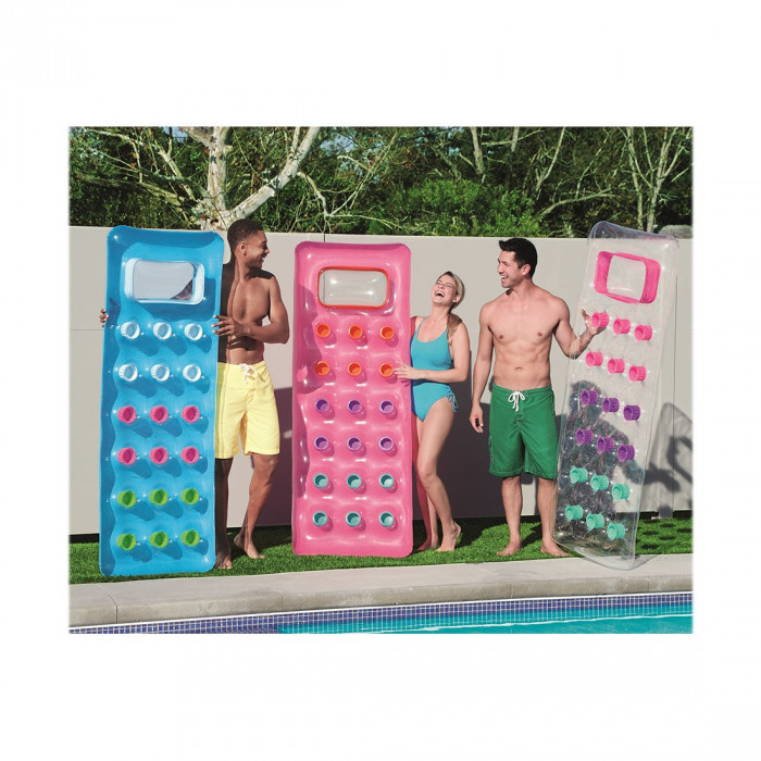 Летнее веселье на солнце начинается здесь! Поразите бассейн или пляж модным забавным прозрачным надувным матрасом для бассейна Bestway® Summer Colors™. Посмотрите под воду через прозрачное окно надувного матраса и почувствуйте тепло солнца на своей коже. Наслаждайтесь часами плавания на прочном надувном матрасе для бассейна с прозрачным верхом и яркой цветной внутренней конструкцией с круглыми распорками (coil beam) для дополнительной поддержки и плавучести. Кроме того, матрас имеет идеальную длину, чтобы вытянуться и вздремнуть. Отдыхать на солнце никогда еще не было так весело, как с прозрачным надувным матрасом для бассейна Bestway Summer Colors!