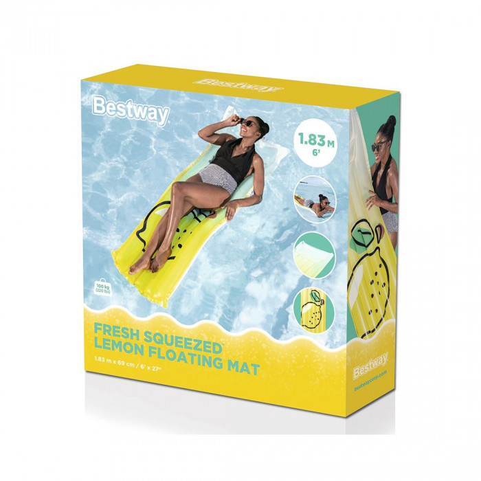 Когда жизнь преподносит вам лимон, выжмите его и уплывите от своих забот на надувном матрасе Bestway® Fresh Squeezed™ «Лимон»! Этот легко надуваемый, предназначенный для одного взрослого, плавающий матрас для бассейна просто лучший, потому что он украшен яркой лимонной графикой и имеет встроенную подушку, которая обеспечивает комфорт и поддержку вашей голове, пока вы отдыхаете на воде и греетесь под теплыми солнечными лучами. Когда вечеринка закончится, легко сдуйте и поместите матрас на хранение, чтобы вы могли наслаждаться им в течение многих солнечных дней. Вам понравится использовать надувной матрас для бассейна Bestway Fresh Squeezed «Лимон» в течение многих сезонов.