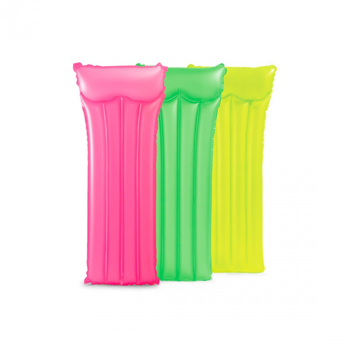 Пляжный матраc для плавания Neon Frost 183 х 76 см, INTEX, 59717EU, Винил, Двухкамерный, Розовый/зелёный/жёлтый в ассортименте, Пакет
