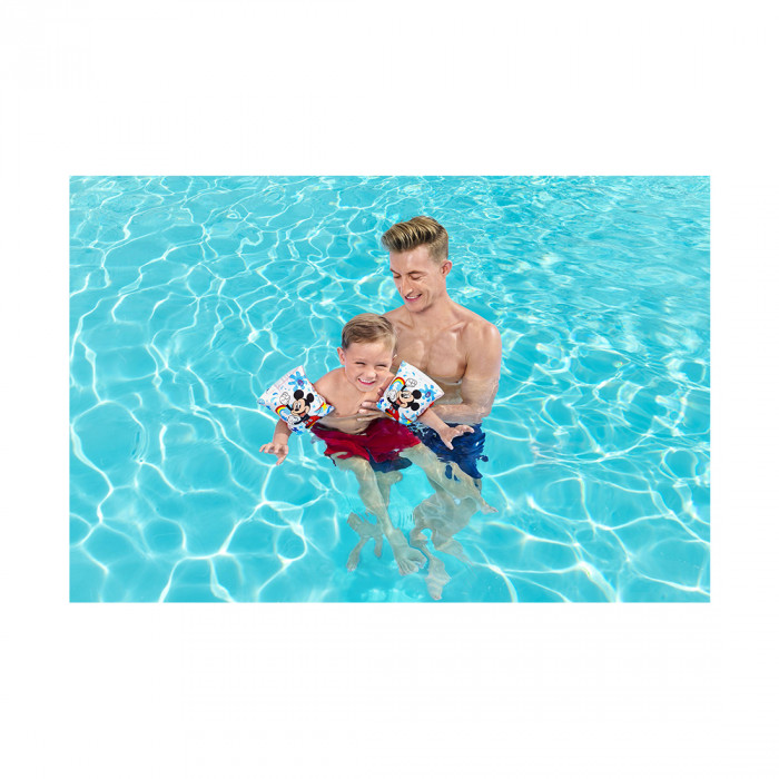 Вот это да! Всеобщий любимец Микки Маус готов помочь вашему малышу активно заняться плаванием с надувными нарукавниками Disney Junior® «Микки Маус и его друзья – Микки Маус». Идеально подходящие для детей в возрасте от 3 до 6 лет, надувные нарукавники с изображением культового лидера «Сенсационной шестерки» подарят вашему ребенку улыбку и придадут уверенности в себе, когда он будет плавать и тренировать свои навыки в этих эластичных удобных надувных нарукавниках для начинающих. Нарукавники имеют двойную воздушную камеру для дополнительной безопасности и плавучести, так что ваш ребенок сможет чувствовать себя в безопасности и все более комфортно в воде. Благодаря легкому надуванию, сдуванию и хранению эти плавательные принадлежности легко положить в пляжную сумку на следующий раз. Учиться плавать теперь безопасно и весело!