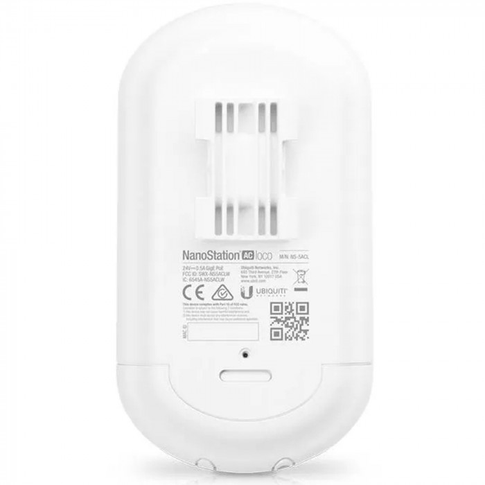 Ubiquiti NanoStation 5AC Loco (LOCO5AC) — уличная/внутренняя точка доступа и CPE-устройство диапазона 5 ГГц стандарта 802.11ac (airMAX ac) с встроенной направленной антенной 13 dBi, гигабитным Ethernet-портом и пассивным PoE-питанием. Предназначена для создания надёжных радиомостов и подключения клиентов на средние и дальние расстояния (до ~10 км).