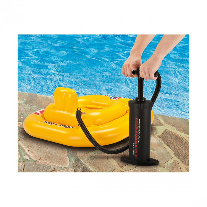 Насос ручной DOUBLE QUICK представляет собой ручной насос быстрого накачивания. Он имеет систему двойного действия, то есть он накачивает изделие как при поступательном, так и при возвратном движении поршня. В комплекте с насосом идет гибкий шланг и 3 насадки для всех видов надувных изделий.