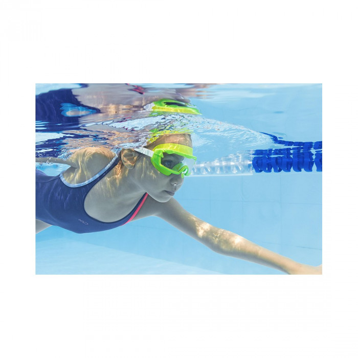 Подарите своим детям четкое, удобное и широкое представление о подводном мире с помощью очков для плавания Bestway® Tidal Surge™ 7+. Яркие очки с широкоугольными линзами и регулируемым силиконовым ремешком с быстросъемной застежкой станут идеальным спутником вашего ребенка в плавании. Ударопрочные линзы с УФ-защитой и защитой от запотевания: Очки защитят глаза ребенка от вредных ультрафиолетовых лучей и при этом не будут запотевать благодаря нанесенным на широкоугольные линзы специальным покрытиям, защищающим от ультрафиолетовых лучей и запотевания. Благодаря герметичному обтюратору вода не будет просачиваться и мешать подводным играм. Кроме того, линзы изготовлены из прочного поликарбонатного материала, поэтому очки ударопрочны и способны выдерживать причиняемые ударные воздействия, когда вы прыгаете, ныряете, плещетесь или бросаете очки в сумку или на площадку перед бассейном. Удобная посадка: Очки Bestway Tidal Surge изготовлены из материалов, не содержащих латекс и ПВХ, что позволяет детям безопасно носить очки в течение многих часов. Закончив плавание, ребенок может нажать на быстросъемную застежку, чтобы легко и безболезненно снять очки и спрятать их до следующего раза, когда он будет готов к новым открытиям.