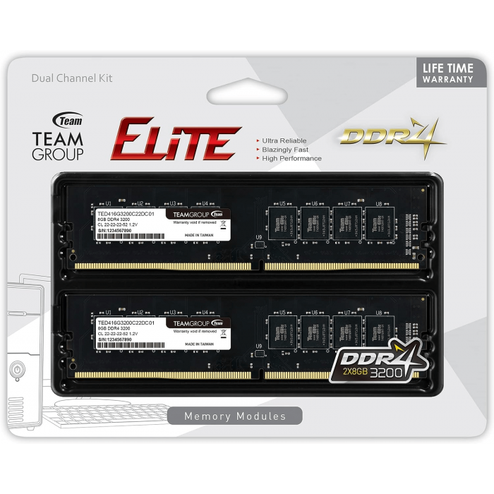 Оперативная память 16GB Kit (2x8GB) 3200MHz DDR4 Team Group ELITE представлена в виде комплекта из двух модулей, которые призваны повысить производительность и скорость отклика игрового компьютера. Модули Team Group T-Force Elite обладают объемом по 8 ГБ и функционируют на тактовой частоте в пределах показателя 3200 МГц. Благодаря чипам DDR4 низкой задержке данные модули способены ускорить отзывчивость аппаратной платформы при запуске требовательных программ и игр. Напряжение питания 1.2 В подчеркивает низкий уровень нагрева и экономичное потребление энергии.