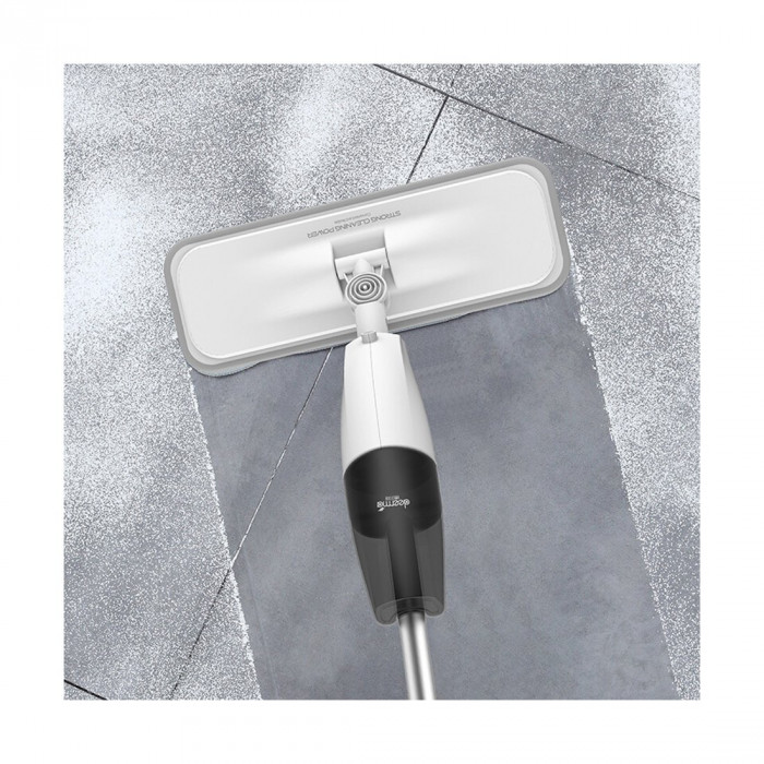 Досконально продуманная конструкция швабры/полотера с применением очень прочных материалов (нержавеющей стали, ABS-пластика и полипропилена), оптимальным размером рабочей части 36.5х12 см, вращающейся на 360°, и достаточно вместительным резервуаром (350 мл) поможет без труда убрать комнату площадью до 100 м². Благодаря столь гибкой конструкции швабры, ей удобно мыть даже под диванами, шкафами и прочей мебелью.
