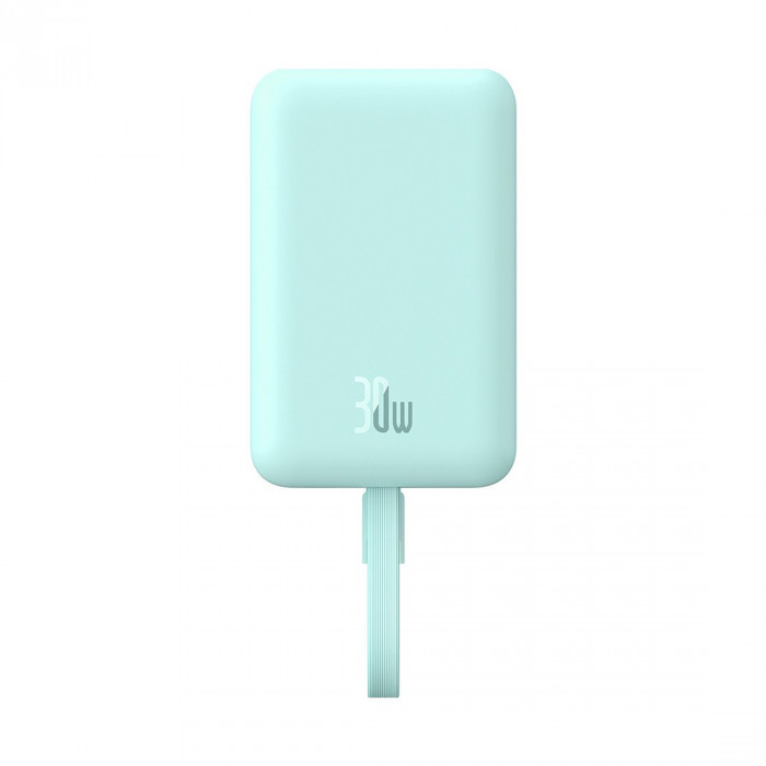 Компактный магнитный внешний аккумулятор ёмкостью 10000 mAh с поддержкой беспроводной зарядки и быстрой проводной зарядки до 30 W. Оснащён магнитным креплением для надёжной фиксации на смартфоне и встроенным кабелем для удобной зарядки в дороге.