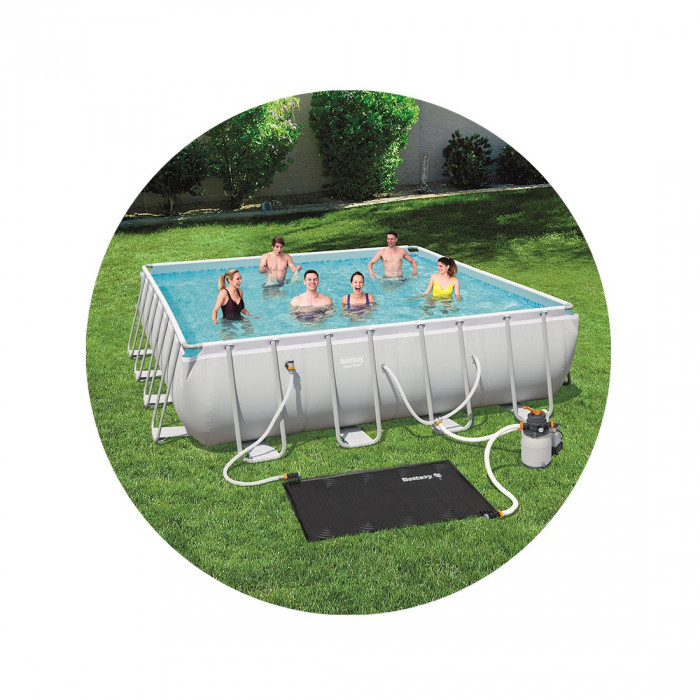 Если при купании вы ощущаете мурашки по коже, то коврик для нагрева воды бассейна от солнечной энергии Bestway® просто незаменим. Это энергосберегающий и эффективный способ подогреть воду в наземном бассейне, создав комфортную и расслабляющую атмосферу для плавания или игр. Нагреватель для бассейна на солнечной энергии имеет два выхода для шлангов, один из которых подсоединяется к фильтрующему насосу, а другой – к наземному бассейну. Прозрачная и чистая вода закачивается в коврик через фильтрующий насос, где затем нагревается и закачивается обратно в бассейн. Для больших бассейнов можно подсоединить несколько нагревательных ковриков для более эффективного нагрева воды. Коврик для нагрева воды бассейна может повысить температуру воды в бассейне на 3-5ºC (5-9ºF), в зависимости от погодных условий. Это один из многих продуктов из коллекции принадлежнос
