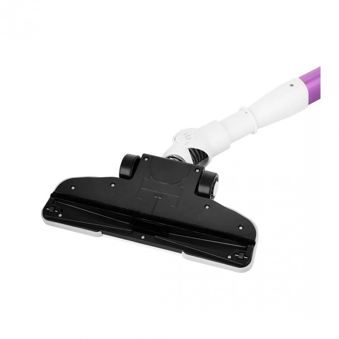 Ручным пылесосом удобно пылесосить углы и плинтусы, обивку мебели, пыль со шкафов, книжные полки, шкафчики на кухне или в гостиной. Дополнительные узкая насадка и ворсовая щётка в комплекте значительно облегчают процесс уборки.Манёвренная щётка