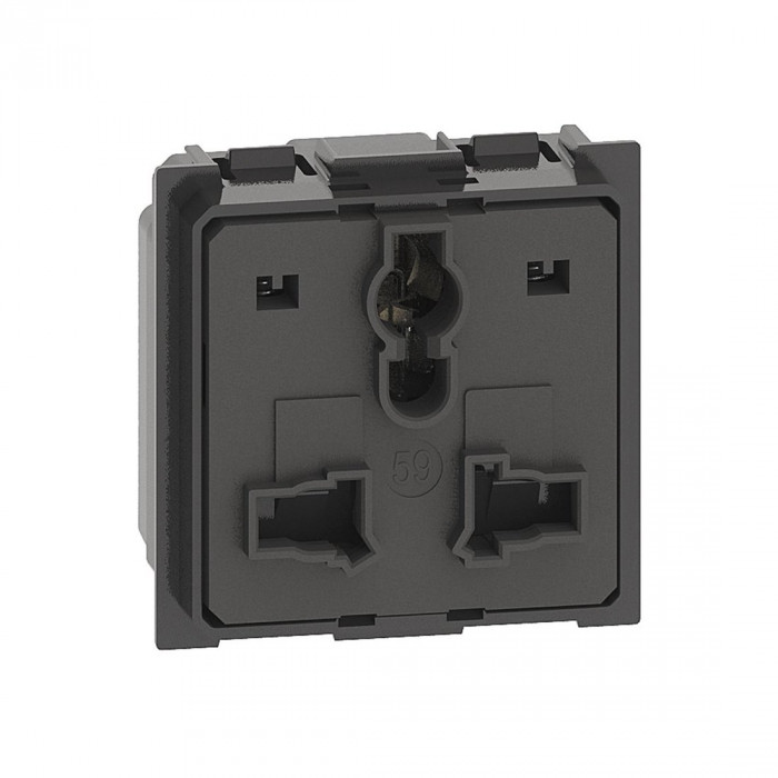 Электрическая розетка универсальная "МУЛЬТИСТАНДАРТ" - европейского / британского / индийского стандарта, с заземляющим контактом и защитными шторками, чёрного цвета - 2 модуля.