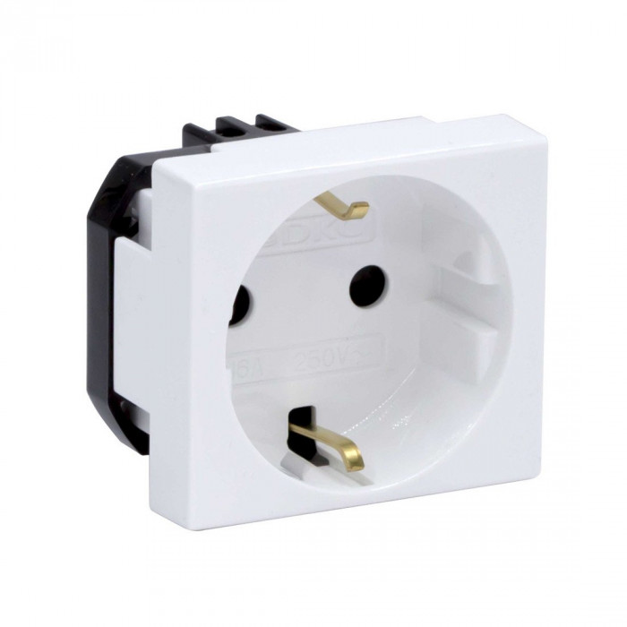 Боковое подключение изделий к электропитанию позволяет экономить пространство при установке в кабель-канал. Специальный суппорт дает возможность закреплять изделия на DIN-рейке. Силовые розетки серии отличаются высокой надежностью и функциональностью. Розетка 2Р+Е имеет шторки, предотвращающие попадание внутрь механизма пыли и сора. Номинальное напряжение – 220-250 В, степень пыле- и влагозащиты IP20. Размеры: ширина – 50 мм, высота – 45 мм, глубина – 39,3 мм. Цвет – белый. Производитель оставляет за собой право вносить во внешний вид изделия изменения, которые не влияют на его функционал, безопасность и надежность.