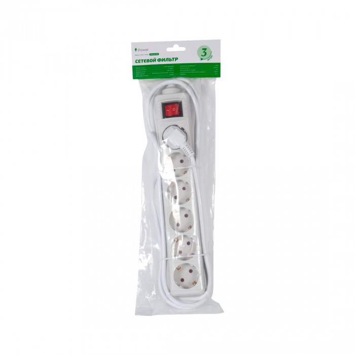 Сетевой фильтр iPower предназначены для подключения электроприборов в местах, удалённых от стационарных розеток. Розеточный блок изготовлен из ударопрочной пластмассы.