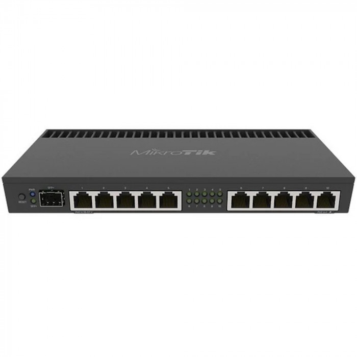 Маршрутизатор MikroTik RB4011iGS+RM RouterBOARD — высокопроизводительное проводное сетевое устройство с 10 гигабитными Ethernet‑портами, 1 портом SFP+ (10 Гбит/с), поддержкой Passive PoE In и PoE Out, мощным четырёхъядер...