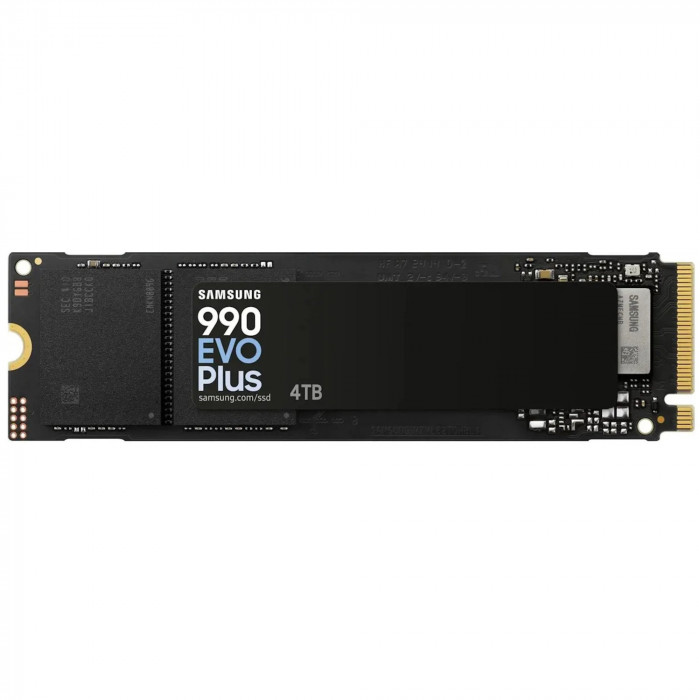 Samsung 990 EVO Plus — твердотельный накопитель SSD объёмом 4 ТБ в форм-факторе M.2 с интерфейсом PCIe 5.0. Обеспечивает высокие скорости чтения до 7250 МБ/с и записи до 6300 МБ/с, а также повышенный ресурс износа TBW 24...