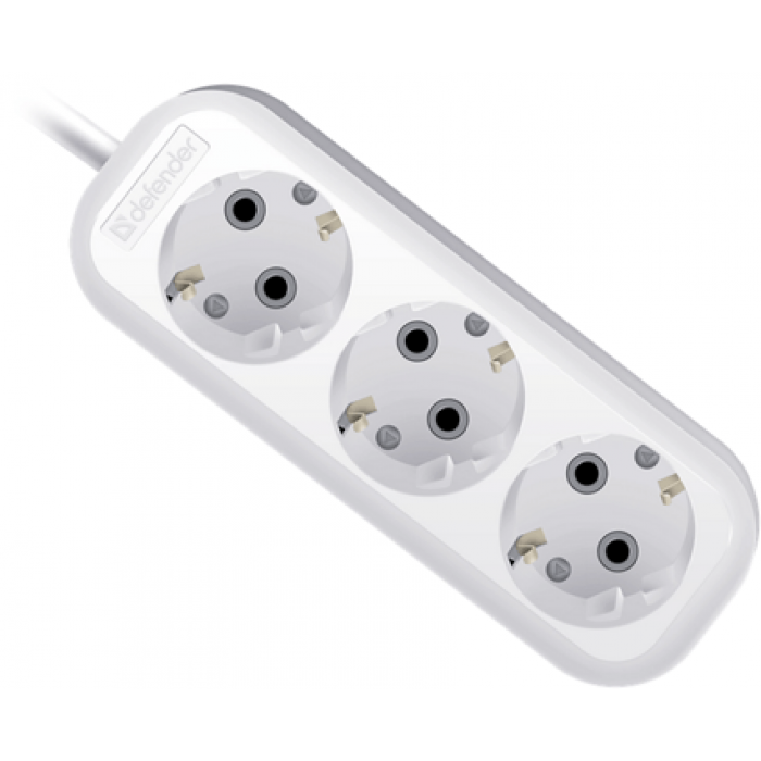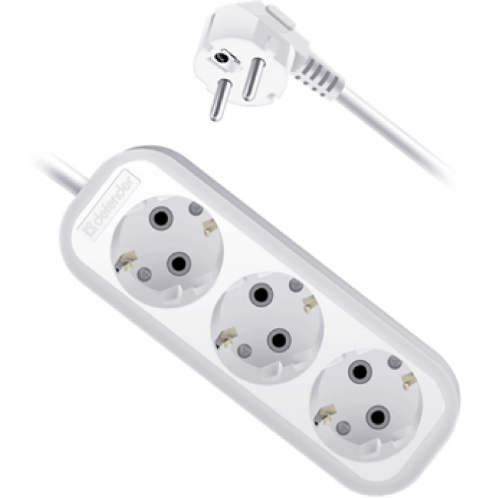 Удлинитель с заземлением Defender R330 16 А, 7 м, 3 розетки, белый