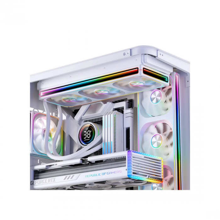 Эстетичный белый дизайн и эффект «бесконечного зеркала» создают стильное визуальное оформление, а высокая производительность вентилятора обеспечивает эффективное охлаждение корпуса. Идеальный вариант для компактных геймерских и рабочих систем.