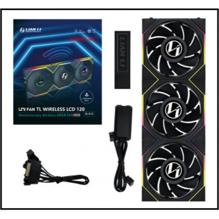 Это комплект из трёх 120-мм вентиляторов с LCD-экраном (центральной круглой панели), поддерживающих беспроводное управление (2,4 ГГц) через контроллер L-Wireless Sync.