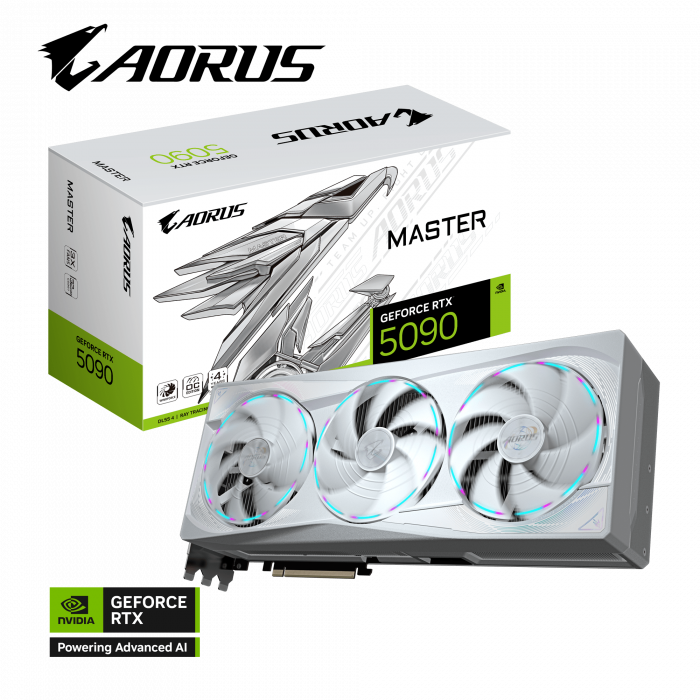 GIGABYTE AORUS GeForce RTX 5090 MASTER ICE 32GD — флагманская видеокарта нового поколения на архитектуре NVIDIA Ada-Next, обеспечивающая революционную производительность для игр, 3D-рендера и ИИ-задач. Оснащена 32 ГБ памяти GDDR7 с 512-битной шиной и интерфейсом PCIe 5.0.