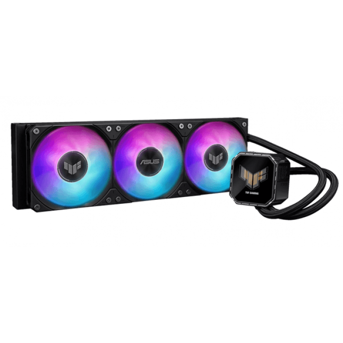 TUF Gaming LC III 360 ARGB LCD — универсальный жидкостный кулер для процессора с предустановленными и интегрированными тройными вентиляторами, обеспечивающими высокий воздушный поток и статическое давление; 2,8-дюймовый ...