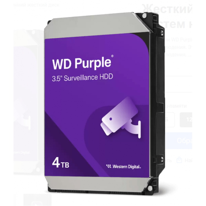 Жесткий диск для видеонаблюдения HDD 4Tb Western Digital Purple SATA 6Gb/s 256Mb 3,5" WD44PURZ
