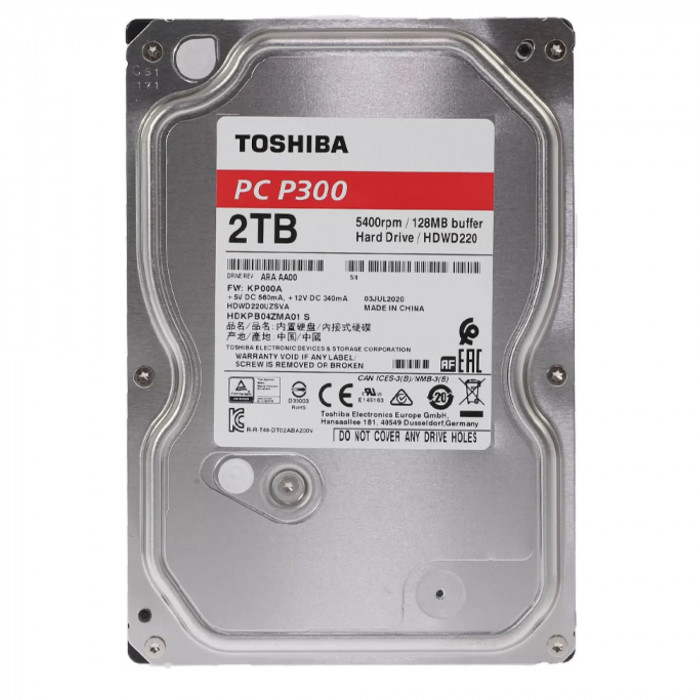Жёсткий диск HDD 2 Tb SATA 6Gb/s Toshiba P300 HDWD220UZSVA 3.5" 5400rpm 128Mb
